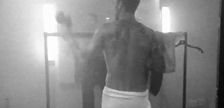 Dare to bare … Adam Levine dropped his towel to reveal his toned …