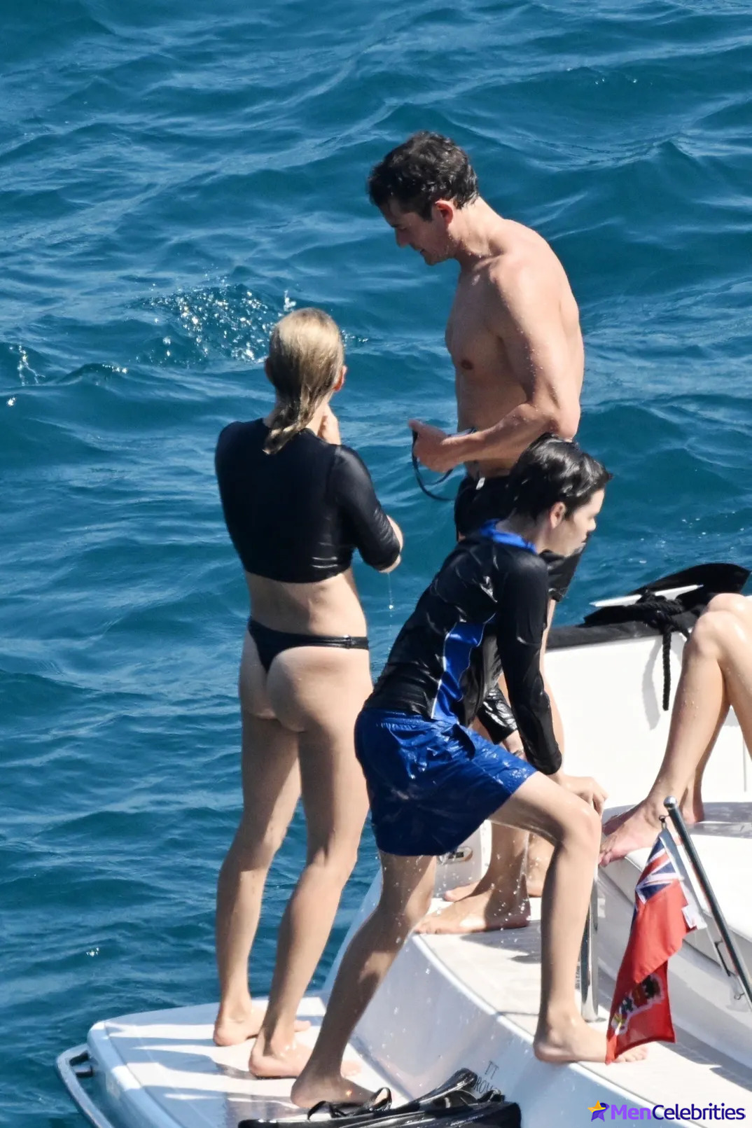 Orlando Bloom was spotted soaking up the sun on a yacht in Italy. He was shirtless, smiling, and clearly enjoying himself. Beside him his son and a mystery woman in a tiny bikini. They went snorkeling, laughing, and swimming like it was just another perfect day.